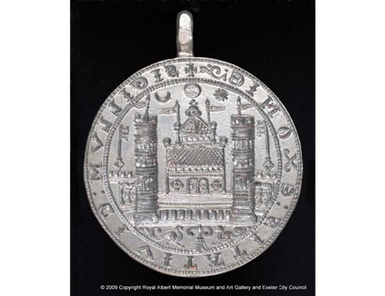 This silver seal is of the 12th century and is the oldest of the surviving civic seals in England. The design is symbolic and does not represent any actual building. The inscribed on it reads 'SIGILLVM CIVITATIS EXONIE', meaning 'the seal of the city of Exeter'. It was used at the Guildhall to authorise important documents.